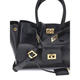 Balenciaga’s Bel Air mini Handbag is a versatile and iconic accessory. Carried on the shoulder, over the shoulder or by hand, it features two handles and an adjustable, removable shoulder strap. The embossed Balenciaga Paris logo with lamination decorates the back. Antiqued gold hardware, a removable key ring, side snap buttons and a swivel closure and engraved logo belts complete the design. It offers a large front pocket, an open main compartment and two interior zippered pockets, combining style and functionality.