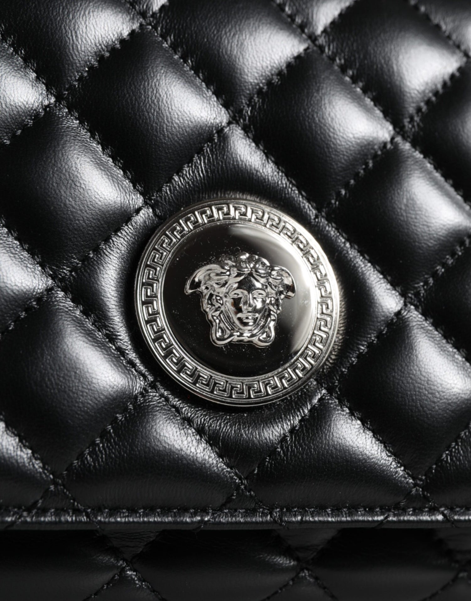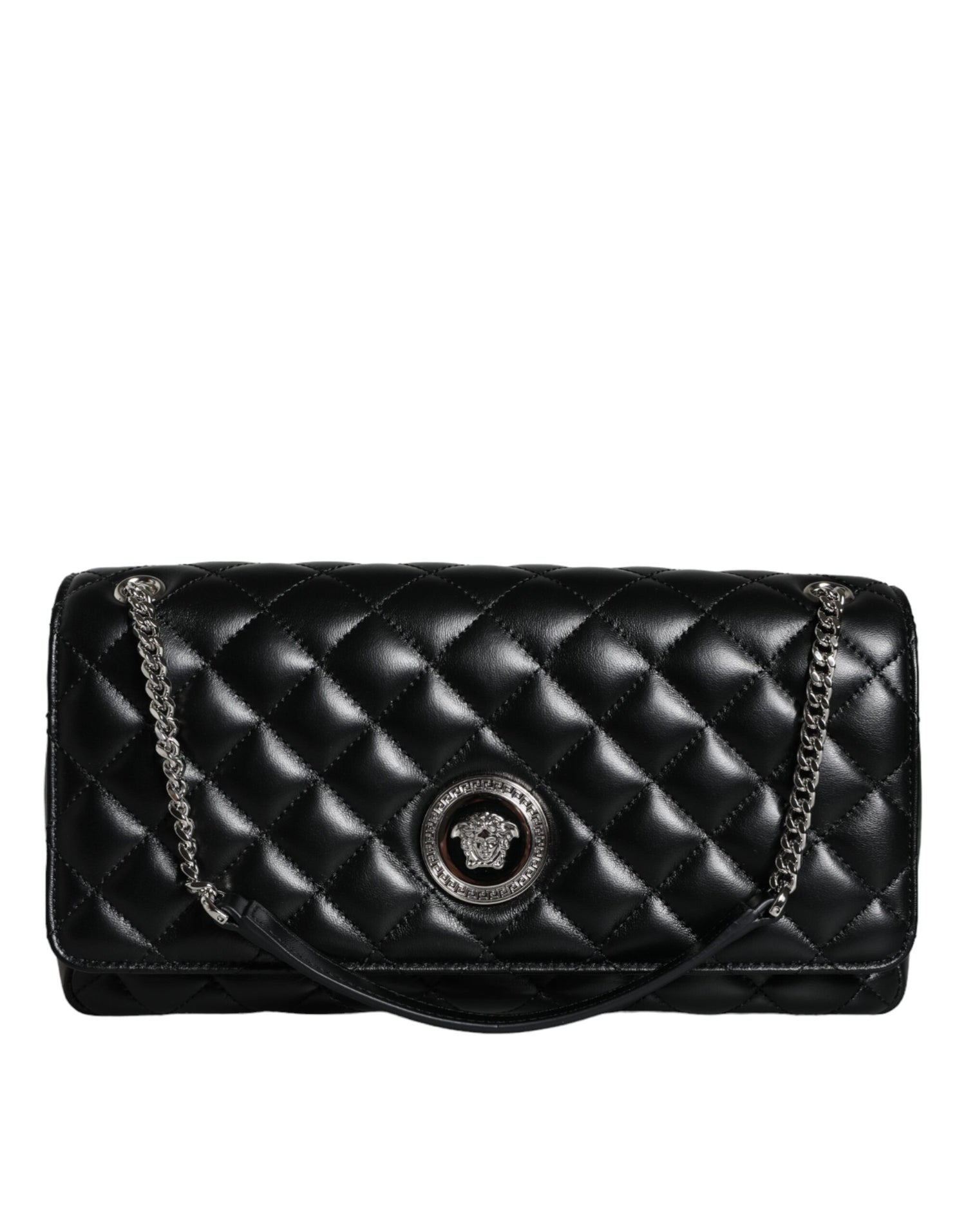 Black Quilted Lambskin Leather Crossbody Shoulder Bag