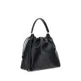 Leather Shoulder Bag by Brunello Cucinelli, top closure by drawstring, adjustable and removable flat handle at top, one compartment, iconic brand signature press-stamped on front.