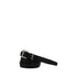 Calfskin Belt by Saint Laurent, rectangular metal buckle, plaque with contrasting iconic brand monogram. Thickness: 2 cm.