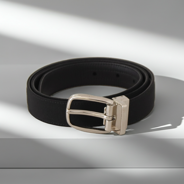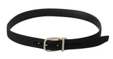 Belt Black Calf Leather Silver Tone Metal Buckle