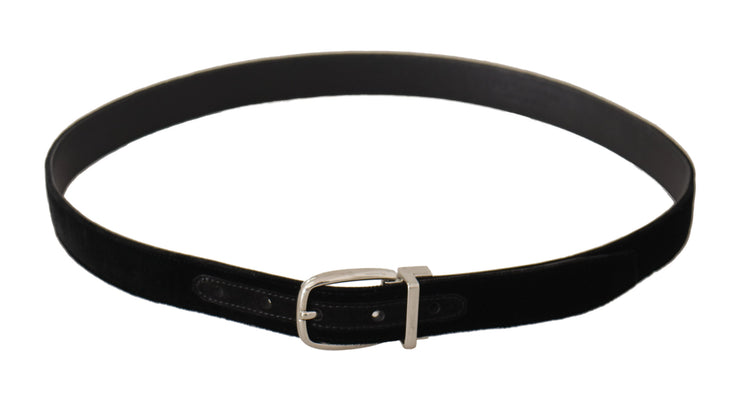 Black Casual Velvet Silver Tone Metal Buckle Belt