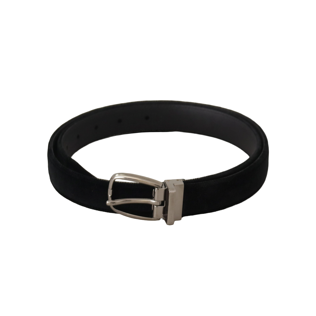 Black Classic Velvet Silver Tone Metal Buckle Belt