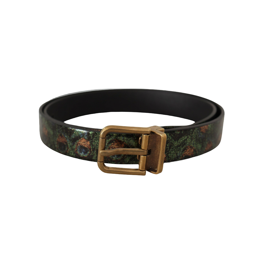 Multicolor Leather Vernice Pavone Bronze Metal Belt
