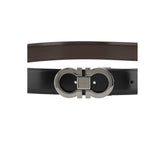 Ferragamo’s Reversible Leather Belt features a refined monochrome design on both sides, ideal for adapting to different looks with just one accessory. The metal buckle is decorated with the iconic Gancini logo, a distinctive symbol of the brand. Measuring 3 cm thick, this belt combines style and functionality to complete every outfit with class.