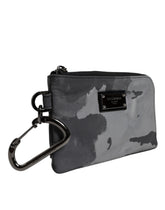 Dolce & Gabbana Black Gray Camouflage Logo Plaque Keyring Pouch Bag