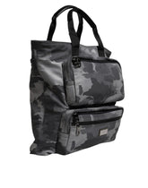Dolce & Gabbana Gray Camo Cotton Multiple Compartments Tote Bag