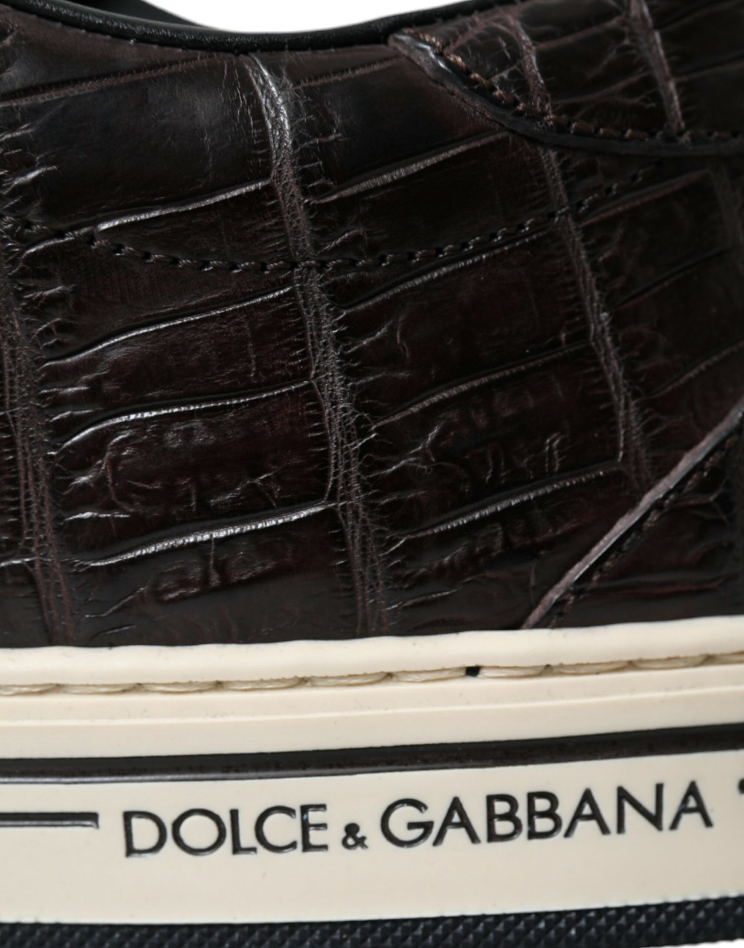 Gorgeous brand new with tags, 100% Authentic Dolce & Gabbana croc-exotic leather in a brown shade sneakers. They feature round toes, laced-up vamps, and stripe detailing on the midsoles.