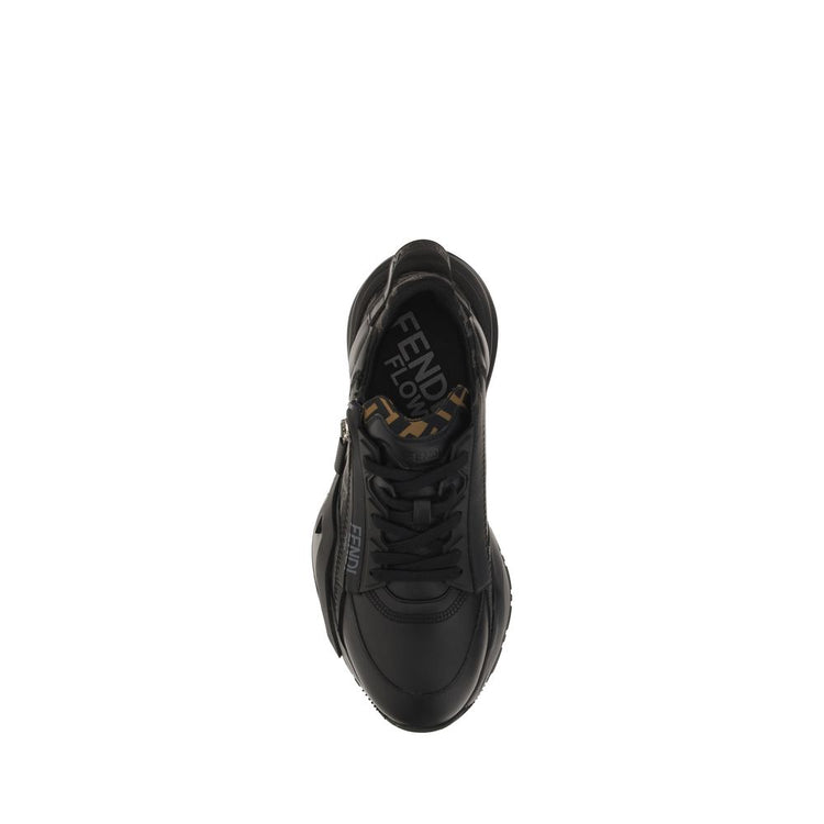 The Fendi Flow Running Sneakers are a perfect balance between sporty style and distinctive design, designed for those seeking a bold and functional look. The structured sole on the heel offers excellent grip and support, while the tone-on-tone press-engraved brand logo on the heel adds an elegant and discreet detail. The front lace-up closure and geometric eyelets create a modern and dynamic silhouette. The contrasting Fendi monogram, applied on the side panel, adds a distinctive and recognizable touch. The elongated toe gives a slender and contemporary shape, while the external side zip offers practicality and a touch of style. The rubber pull on the heel, with the press-engraved monogram, adds an additional exclusive detail.