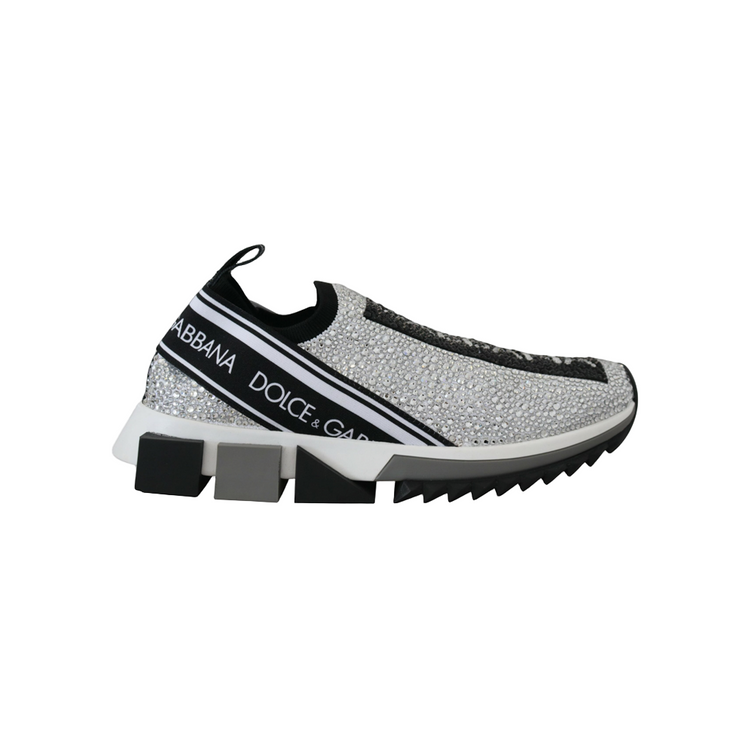 Gorgeous, brand new with tags 100% Authentic Dolce & Gabbana Silver rhinestones sorrento sneakers. Featuring a round toe, a slip-on style, a pull tab at the rear and a ridged rubber sole.