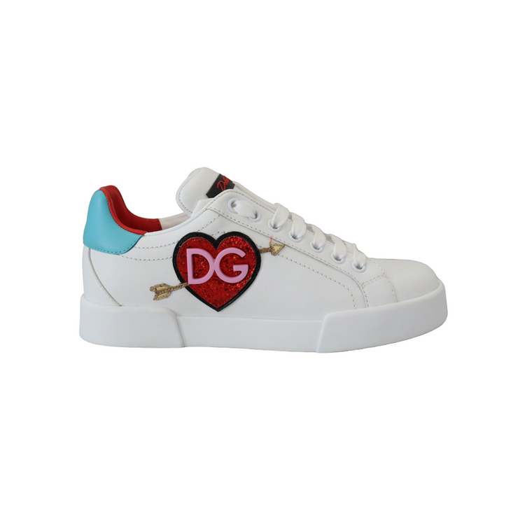 White Leather Sneaker Portofino Logo Heart Shoes