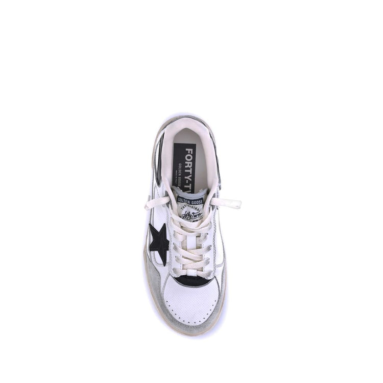 The Golden Goose Forty2 Sneakers are inspired by the glory days of American basketball, reinterpreted with a contemporary aesthetic and exceptional artisanal construction. The chunky low-top silhouette features micro-perforated inserts and 3D textured effect details, such as the black TPU star and the black leather back insert. The design is completed by the coordinated heel tab, the grey piping, the ice grey suede toe and the white laces with a vintage effect, for a bold and sophisticated look.