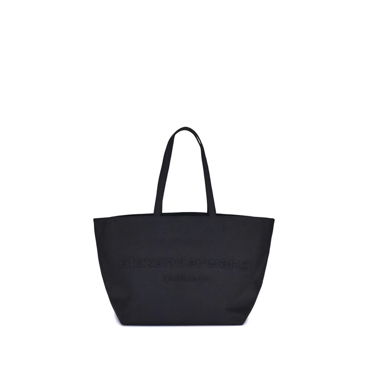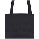 The Alexander Wang Punch Tote Bag combines a minimalist design with distinctive details, such as the embossed logo on the front. Featuring a top knot closure and two flat shoulder straps, it offers a clean and functional silhouette. The large single compartment is enriched with an internal dedicated laptop pocket, along with a logo patch on the inside, making this tote perfect for those looking for style and practicality on every occasion.