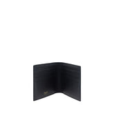 Calfskin Wallet by Ferragamo, billfold model, grained leather design, banknote compartment, interior card slot, iconic brand monogram press-stamped on interior panel, three-dimensional iconic brand Gancini logo plaque applied to front.