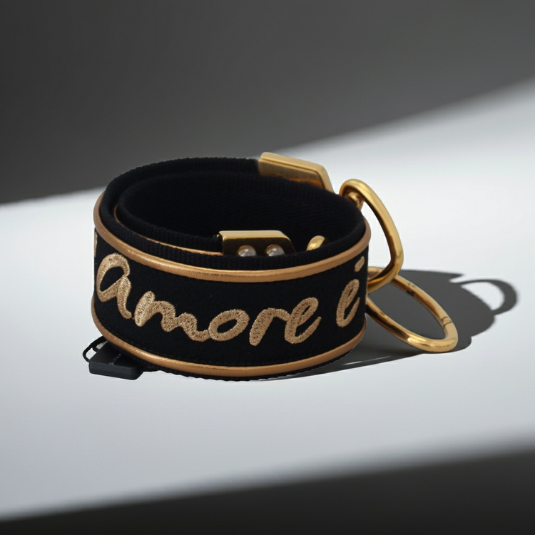 Dolce & Gabbana Black Gold Logo Print Brass Bag Shoulder Strap