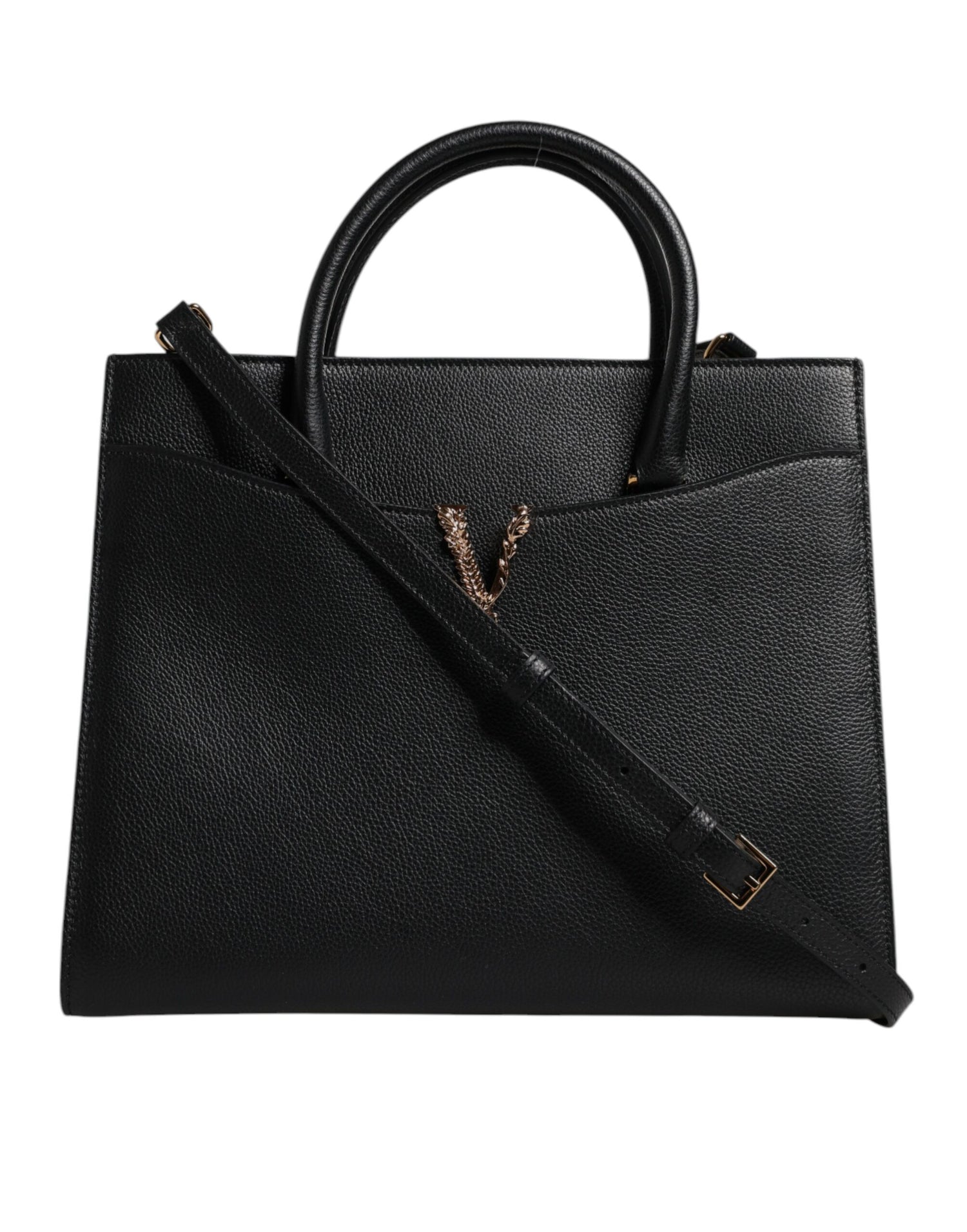 Versace Black Large Leather Top Handle Shoulder Crossbody Bag