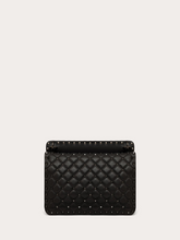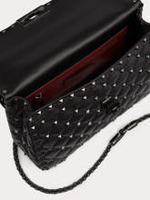 Valentino Garavani Rockstud Spike medium chain bag in soft lambskin nappa leather. Quilted and decorated with small tone-on-tone studs. The bag can be worn on the shoulder/cross-body or hand-held thanks to its removable handle and sliding chain.