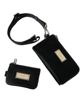 Dolce & Gabbana Black Nylon Logo Plaque Keyring Pouch Clutch Bag