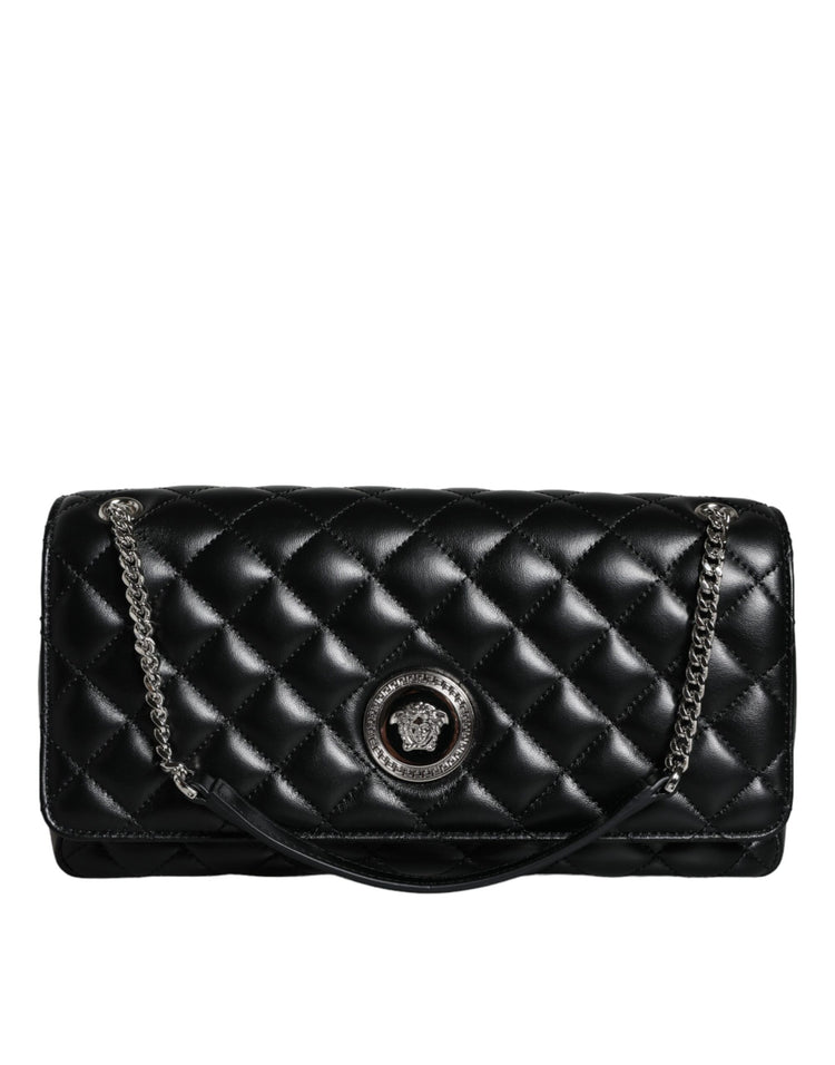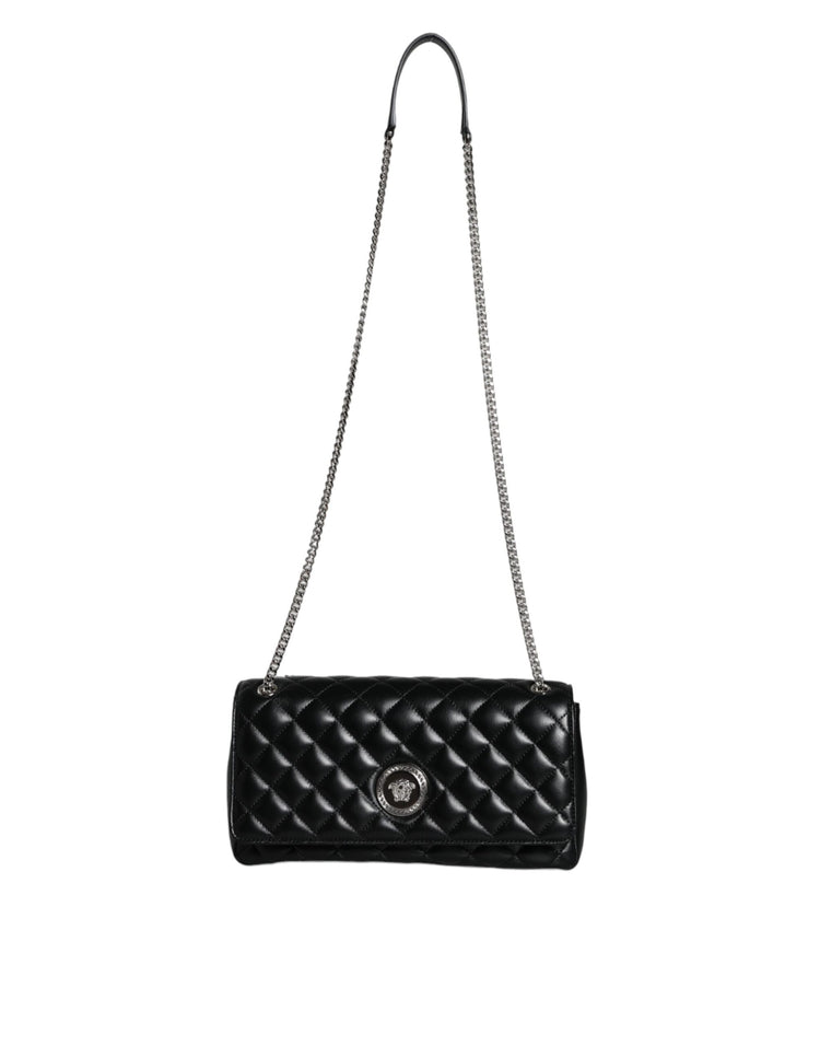 Versace Black Quilted Lambskin Leather Crossbody Shoulder Bag