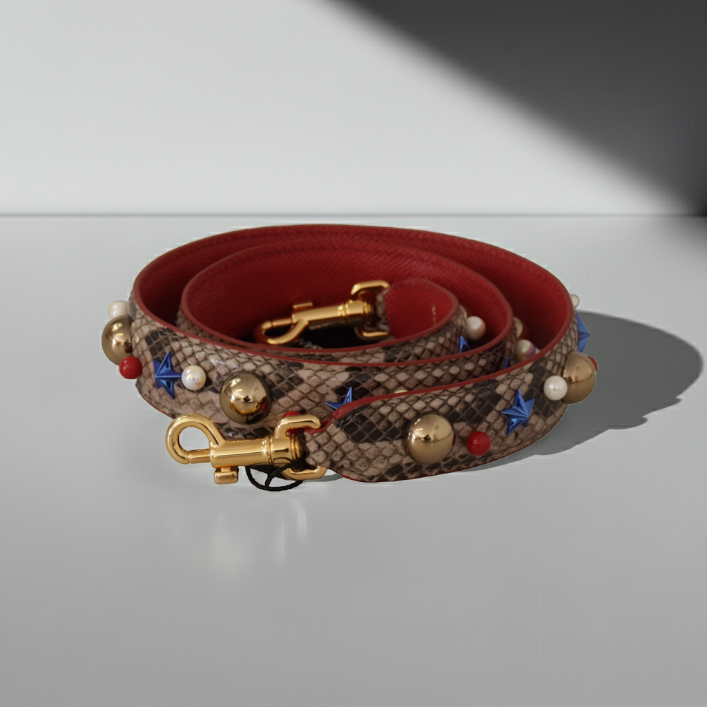 Dolce & Gabbana Brown Python Leather Studded Shoulder Strap