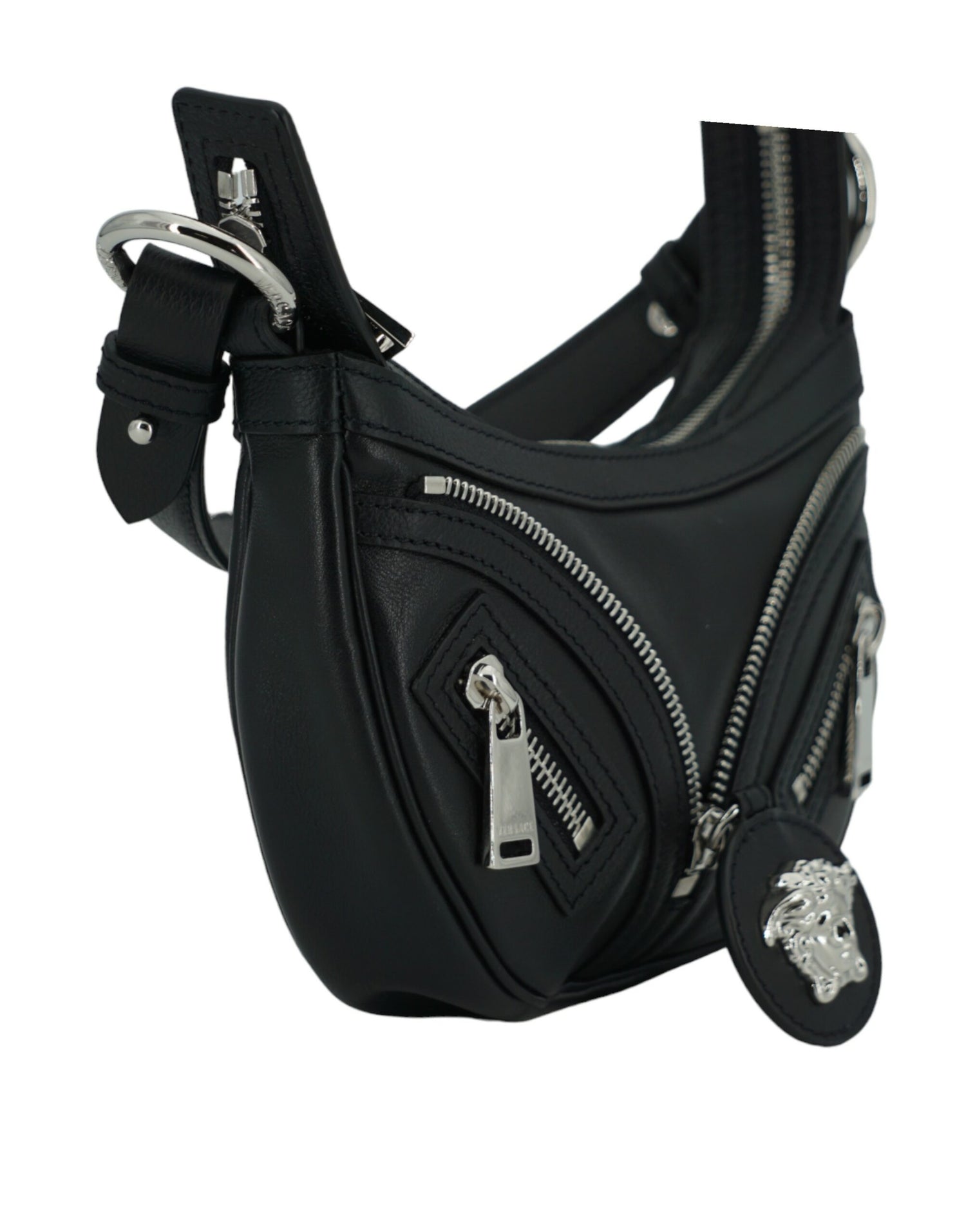 Discover the epitome of luxury with the Versace Mini Hobo Shoulder Bag, a versatile addition to your accessory collection. Boasting the quintessential Versace craftsmanship, it offers a sleek design complete with a sophisticated medusa head logo, perfectly suited for any occasion that calls for a touch of glamour.