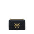 Calfskin Love One Mini Shoulder Bag by Pinko, featuring front flap closure with magnetic button, iconic gold-plated Love Birds logo embossed on front, dual interior compartment, sliding chain strap, iconic tone-on-tone embroidered brand monogram on back, adjustable and removable flat leather shoulder strap.