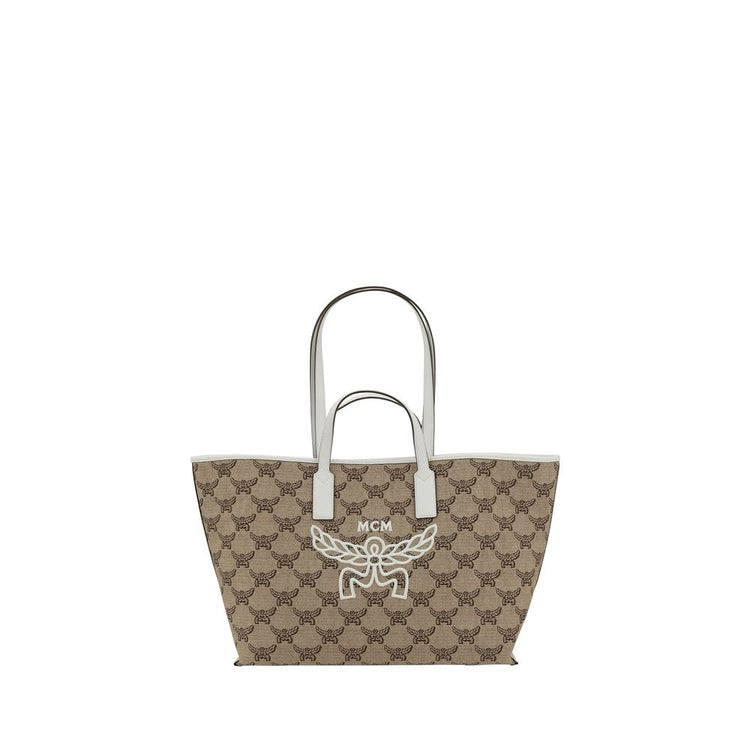 MCM’s medium Himmel Tote bag is a stylish and versatile design featuring a concealed magnetic closure for security and convenience. It has two short flat handles for convenient hand carrying and two long flat handles, ideal for carrying on the shoulder. Inside, a removable pouch provides additional space and organization. The iconic contrasting logo on the front adds a distinctive touch, making this bag a sophisticated and functional accessory perfect for any occasion.