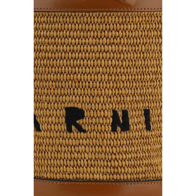 Tropicalia raffia Bucket Bag by Marni has a summery, sophisticated style. Enhanced with contrasting leather trim and details, it features a double round leather top handle and an adjustable flat shoulder strap for versatile wearability. The interior drawstring closure ensures practicality and security, while the matching fabric lining adds a curated touch. The front features the brand’s iconic embroidered contrasting monogram. Completing the design is an interior zippered pocket, ideal for storing smaller items.