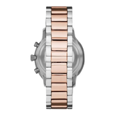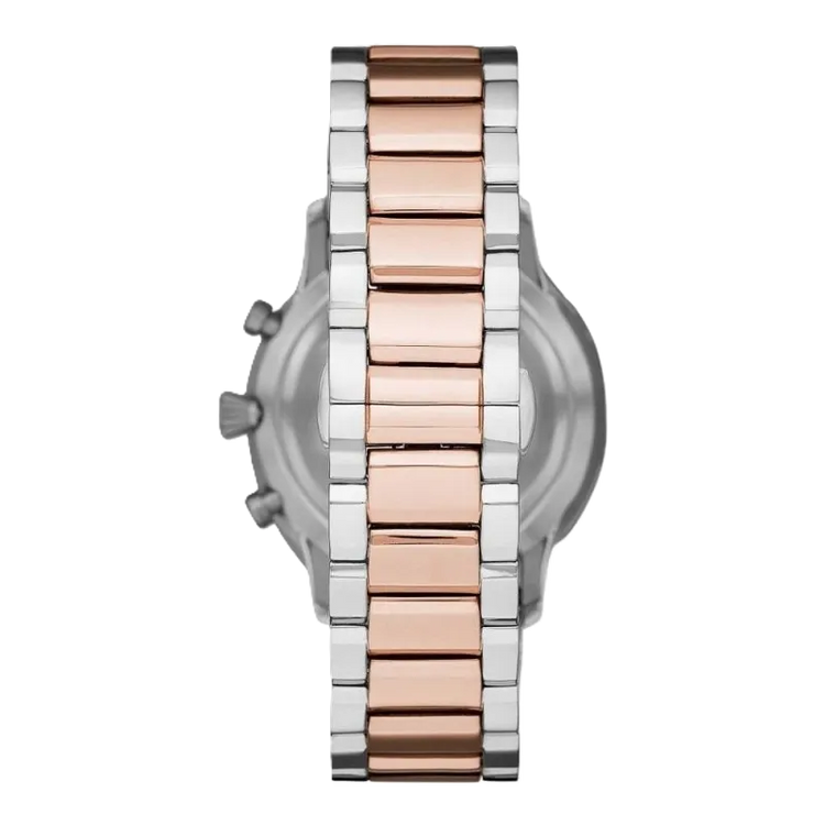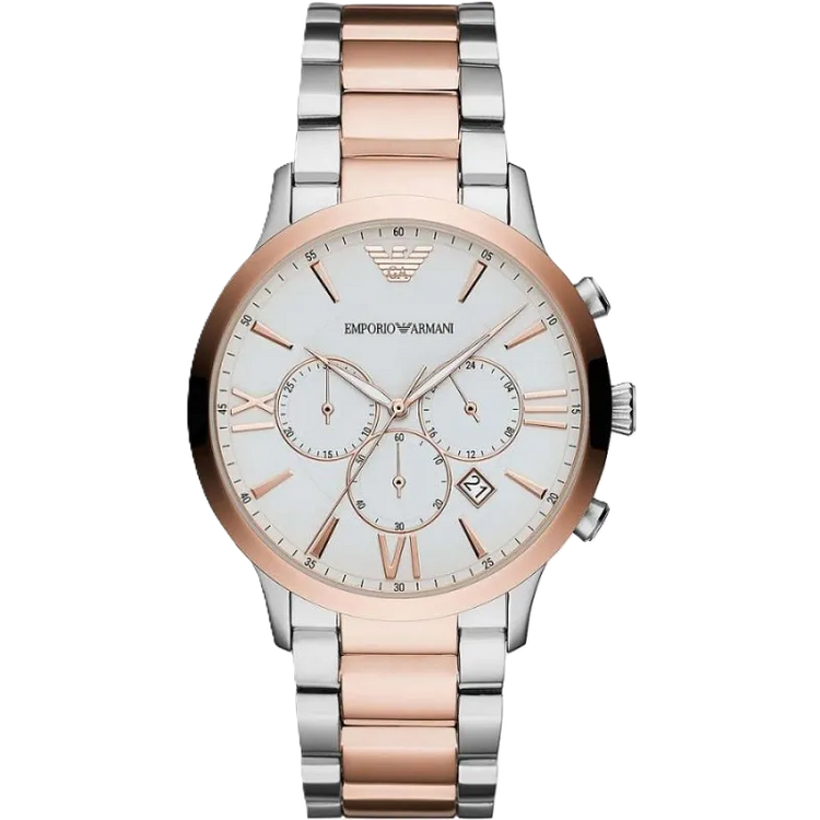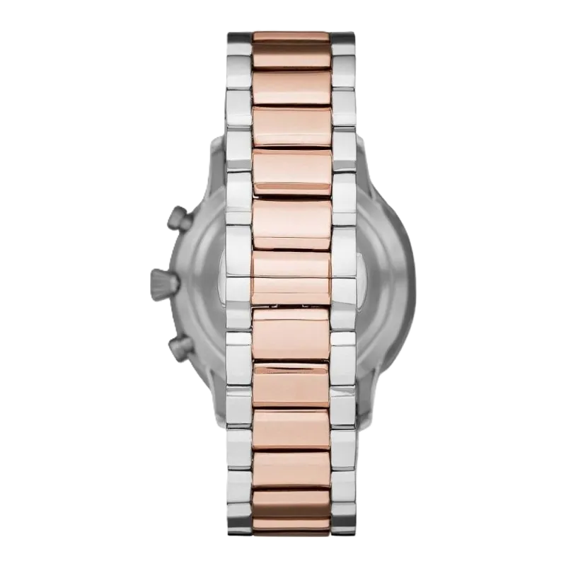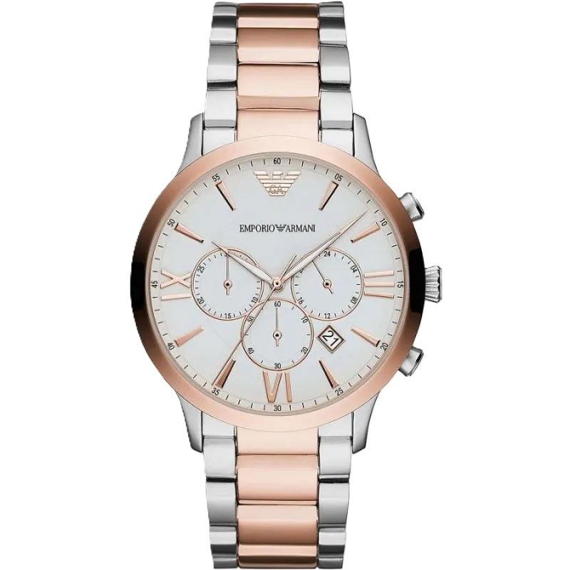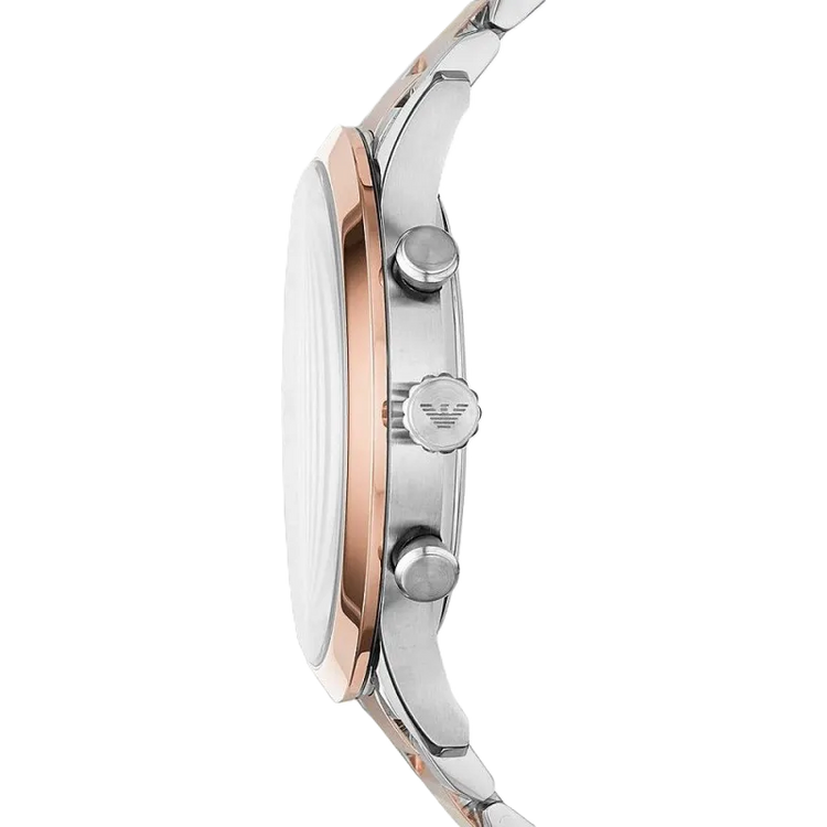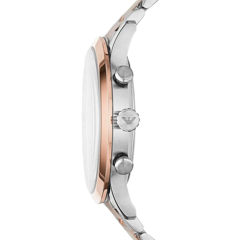 Discover the epitome of sophistication with this Elegant Two-Tone Timepiece for Men by Emporio Armani. A flawless mix of durability and grace, this watch features a striking white dial, perfectly accentuated by luminous rose gold-tone hands for supreme legibility. The exquisite two-tone band in silver and rose color provides a modern twist to a classic design, ensuring you make a statement wherever you go. Perfect for every occasion, it blends functionality with style, equipped with a date function and water-resistance up to 50 meters, so you can embrace every challenge without hesitation.