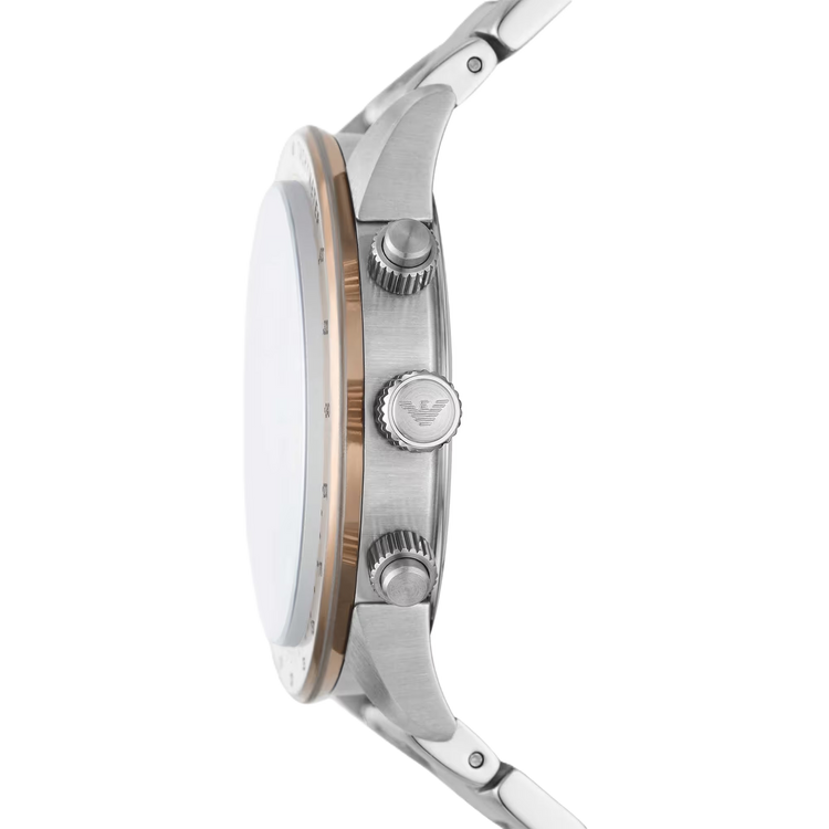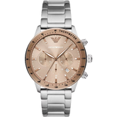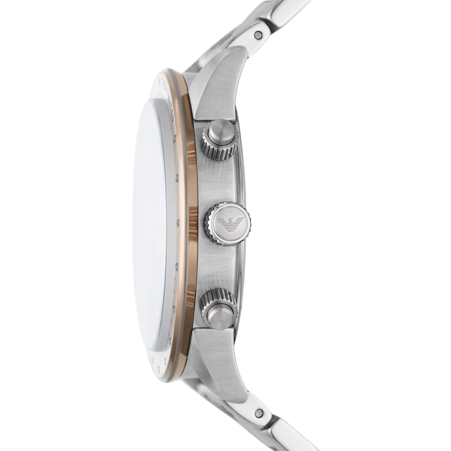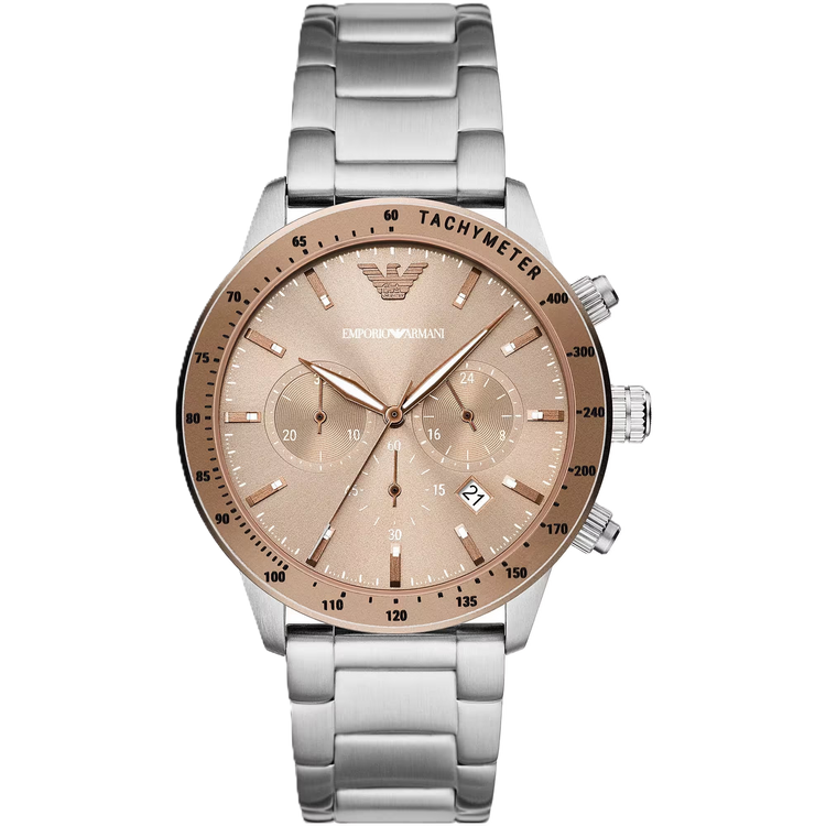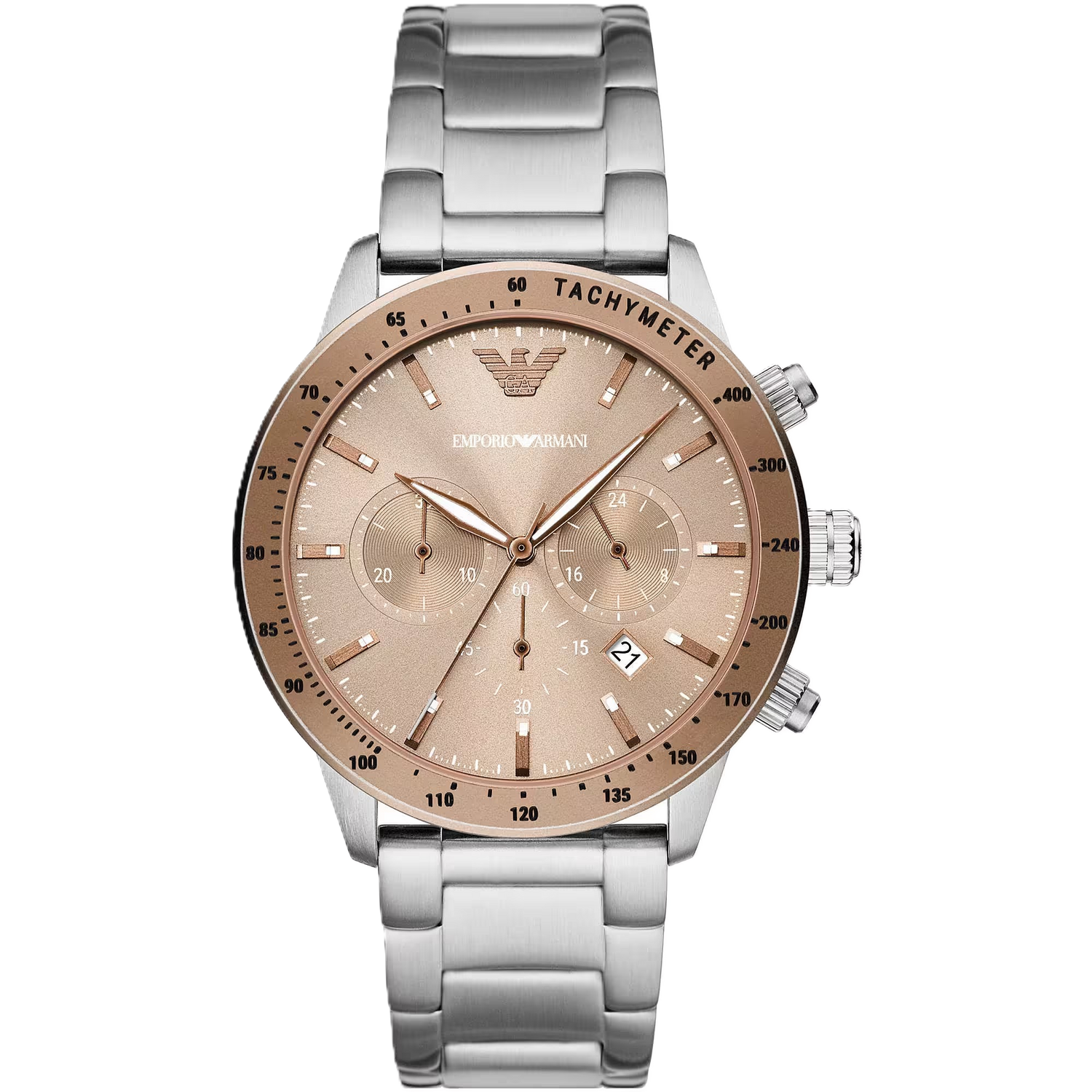 Immerse yourself in the sophistication of Emporio Armani with this exquisite Classic Chronograph Men’s Watch. Boasting a robust stainless steel composition in a sleek silver hue, this timepiece merges classic charm with modern functionality. The satiny finish and beige dial express a subtle elegance, while the durable deployment clasp ensures a secure and stylish fit. With a 43mm case size and precise quartz movement, it’s designed to keep pace with the dynamic lifestyle of the contemporary man.