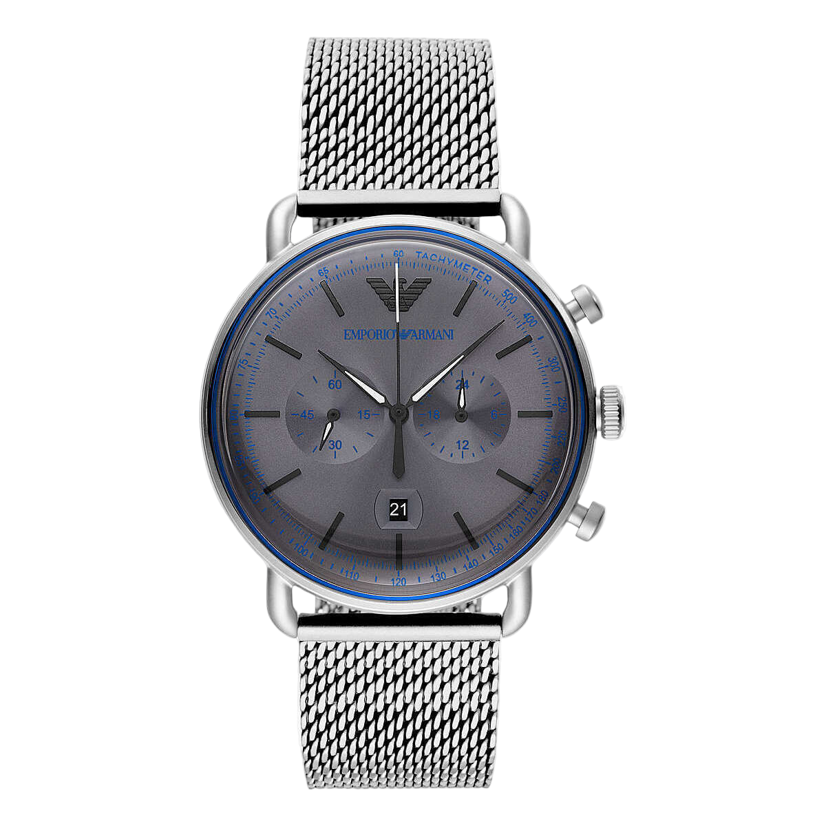 Introducing a timepiece that blends functionality with a sleek, modern aesthetic – the Emporio Armani Men’s Chronograph Watch. This exclusive accessory is not only a symbol of precise timekeeping but also an expression of refined taste. The watch features a robust 43mm stainless steel case with a sophisticated matte silver finish and a complementary grey dial, embodying a trendsetting style for the contemporary man.