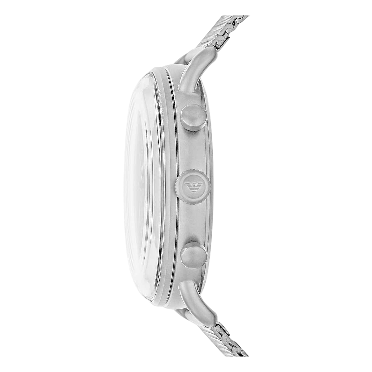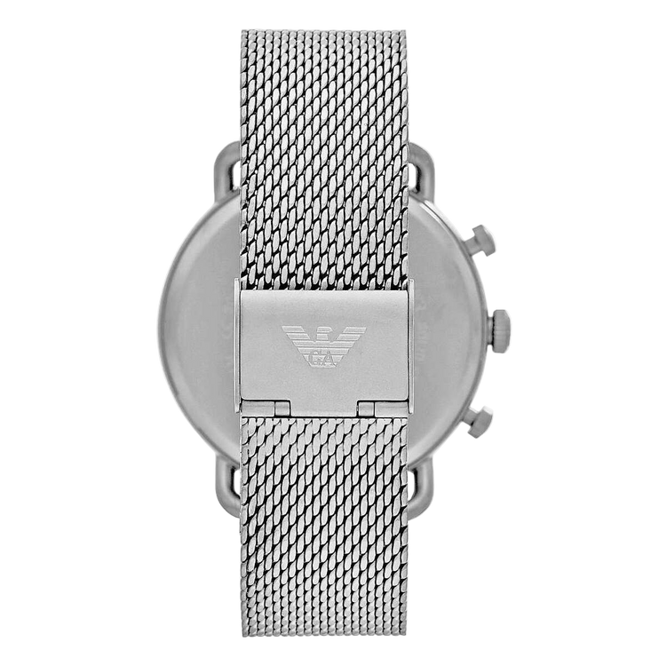 The meticulously crafted mesh stainless steel bracelet boasts a secure snap safety closure, ensuring a comfortable fit for everyday wear. With a water resistance of up to 50 meters, it seamlessly combines durability with elegance. Emporio Armani’s commitment to excellence is further affirmed by the international warranty that accompanies your purchase.