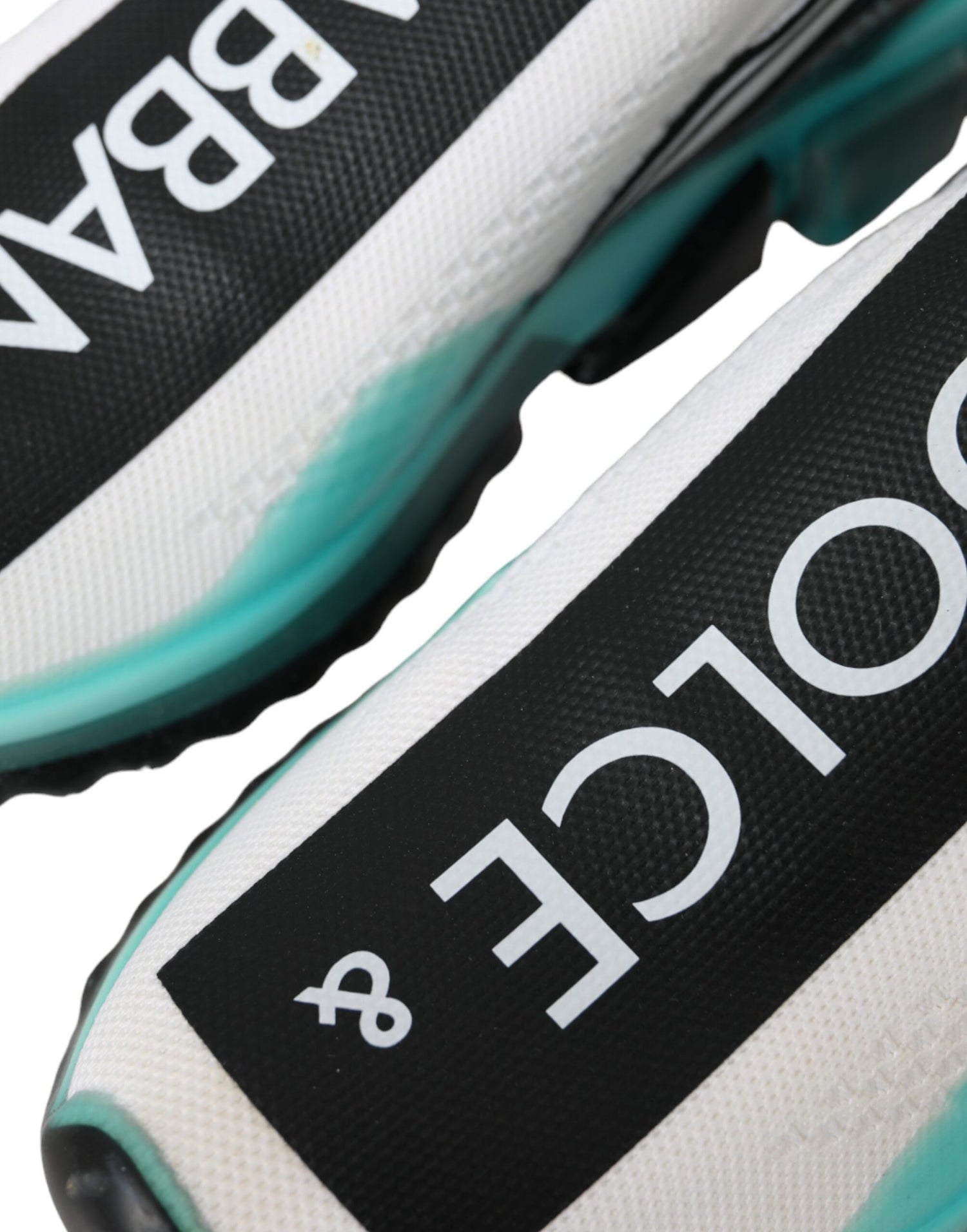 Gorgeous brand new with tags, 100% Authentic Dolce & Gabbana White and black ‘Sorrento’ sneakers. Decorated with a logo print in white and black. Fabric pull strap sewn-in at the back. Black decorative rubber sole.